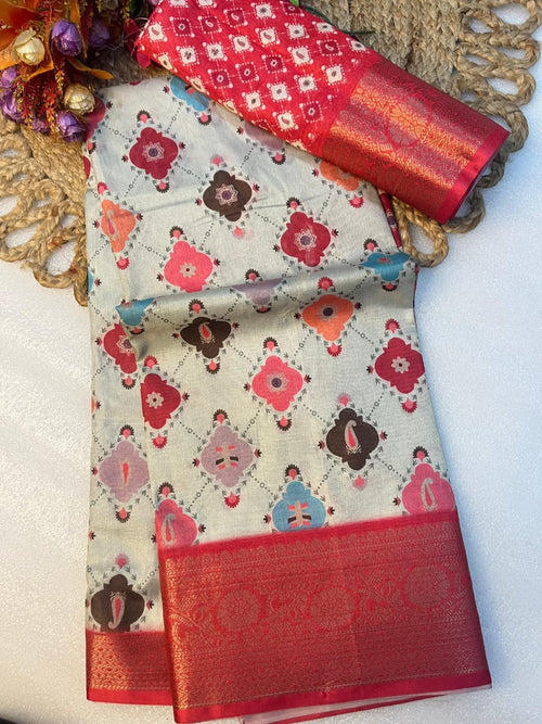 Premium Lustro Silk Saree – Digital Print with Matching Blouse -