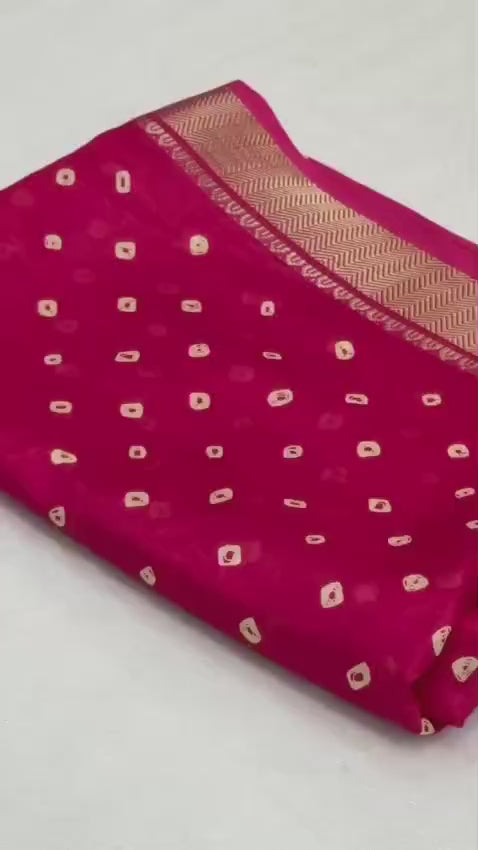 Dola Silk Saree with Bandhani Print & Zari Border – Festive Radiance for Boutique Displays