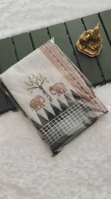 Heavy Linen Blooming Saree with Gajraj Digital Print & Motif Tussels – Premium Festive Collection